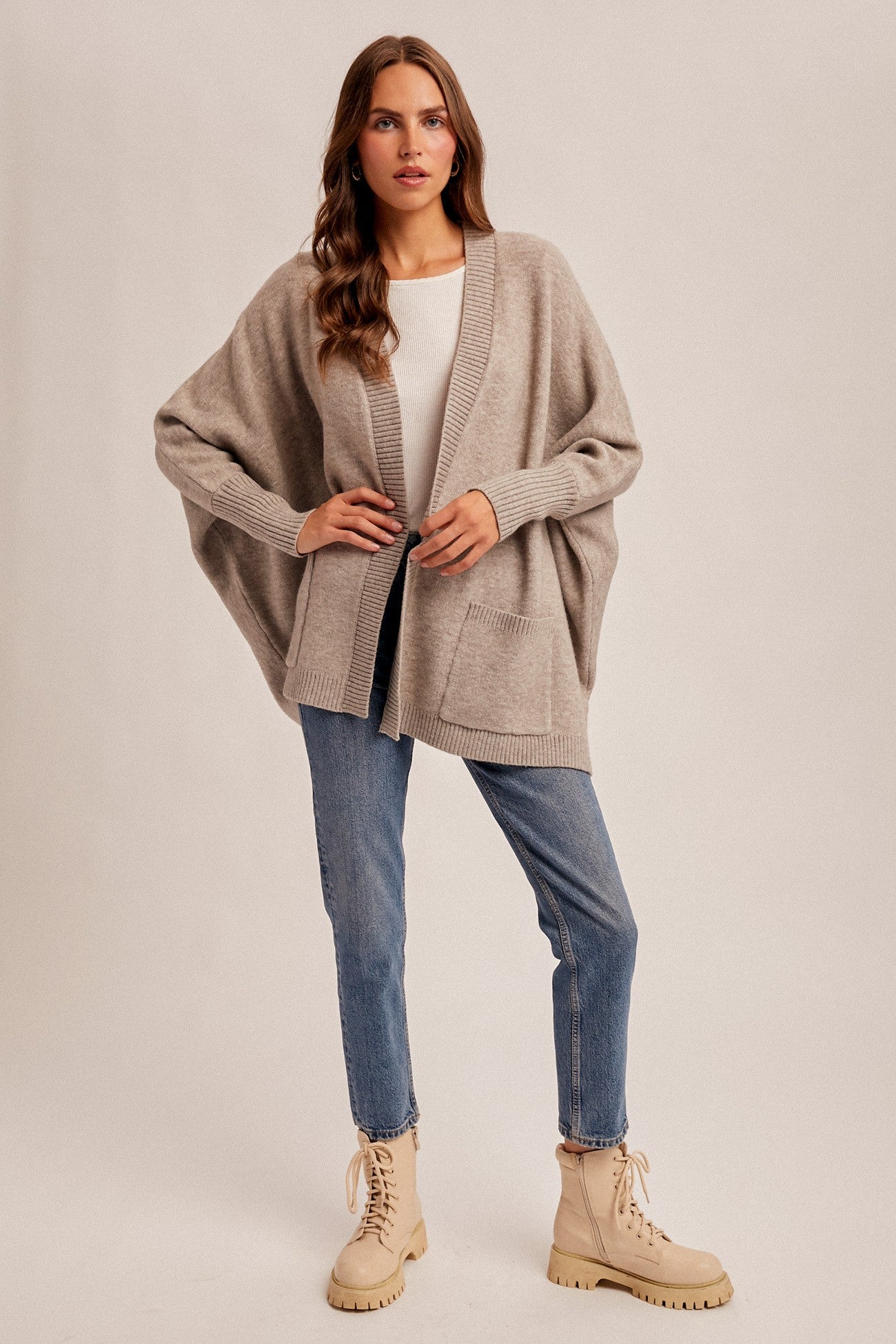• Callie Dolman Sleeve Hoodie Cardigan with Pockets