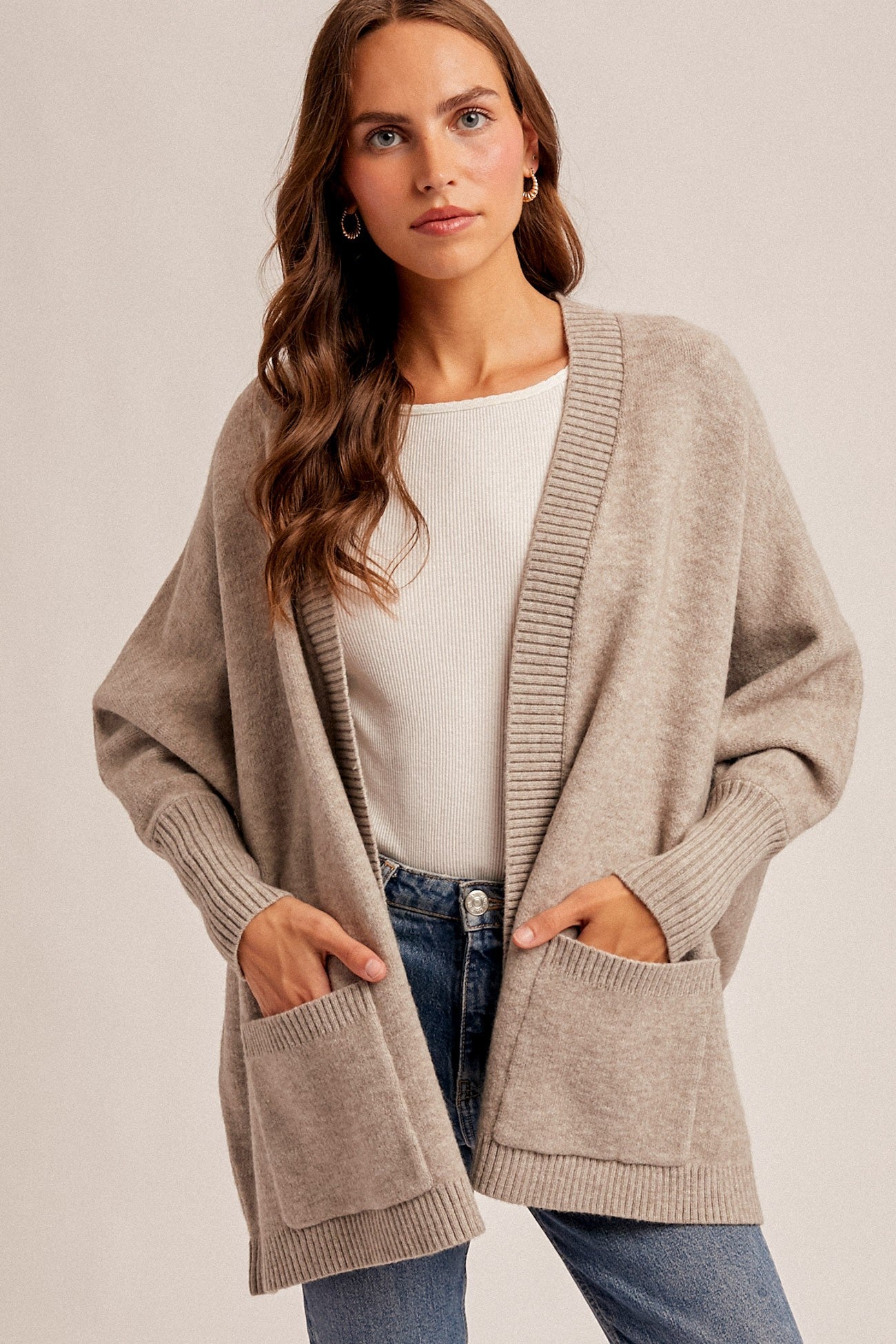 Callie Dolman Sleeve Hoodie Cardigan with Pockets