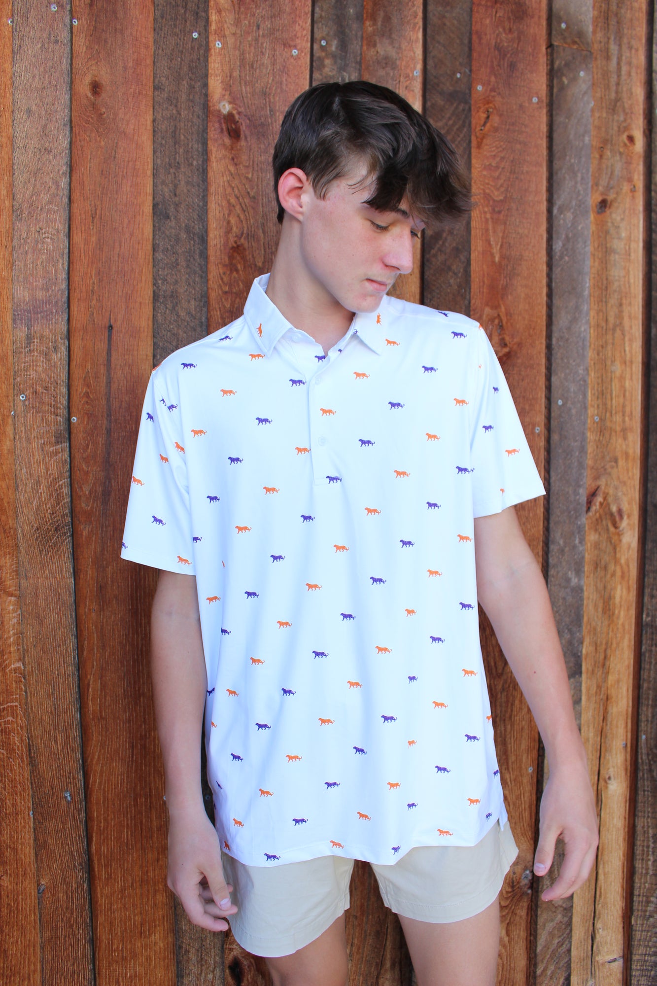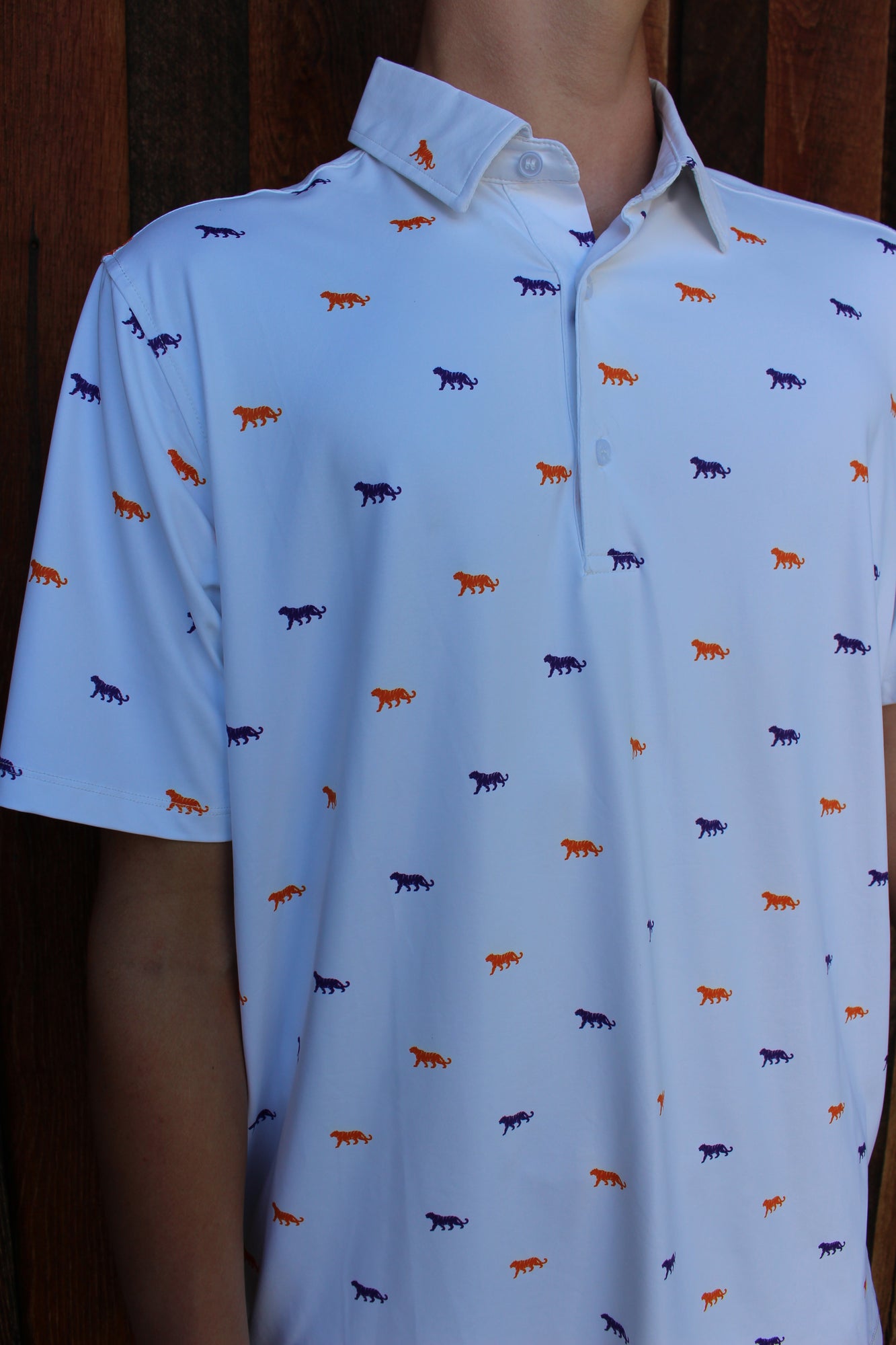 Step up your style game with the Elkmont Men's Twin Tigers Polo. Featuring a bold twin tiger design, this polo adds a fierce and fun touch to your casual wardrobe. Crafted for comfort and confidence, it’s perfect for those who like to roar with personality wherever they go.