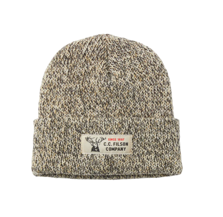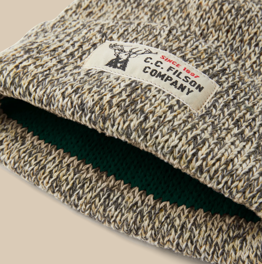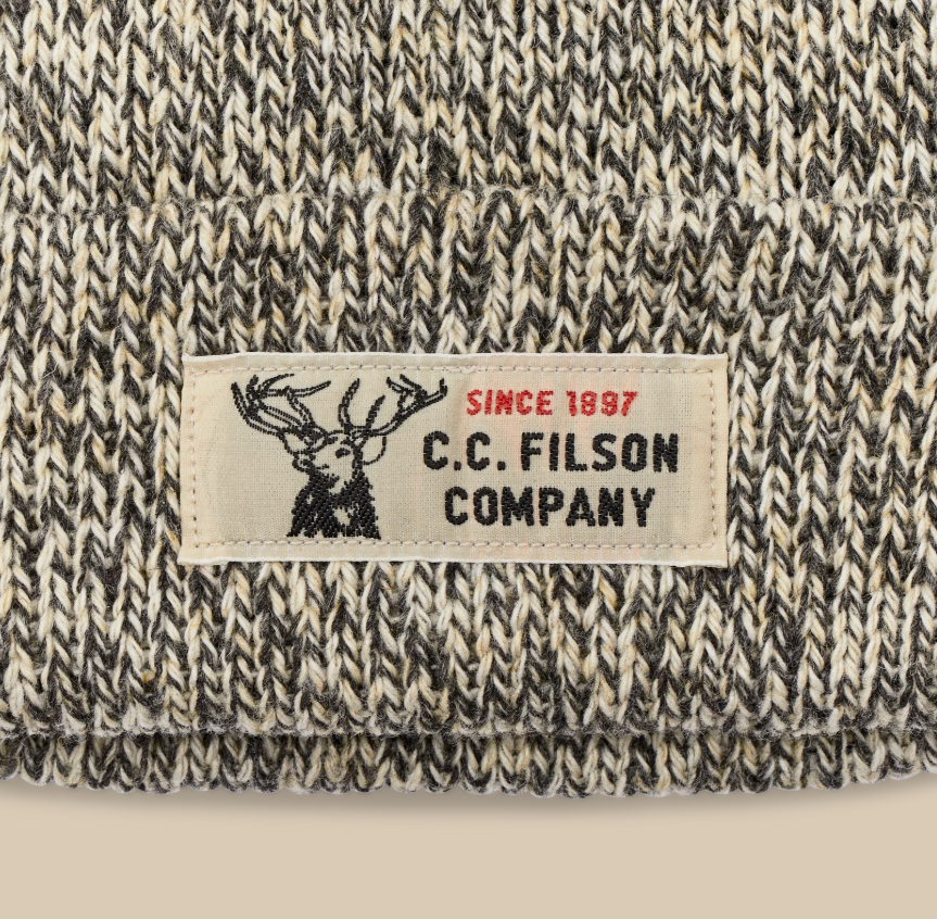 Warm your entire body by putting the lined Ragg Wool Beanie on your head. It's knitted with eco-friendly wool/recycled polyester yarns and lined with acrylic for itch-free comfort. Cuff can be pulled down for added coverage. Classic Filson logo label.