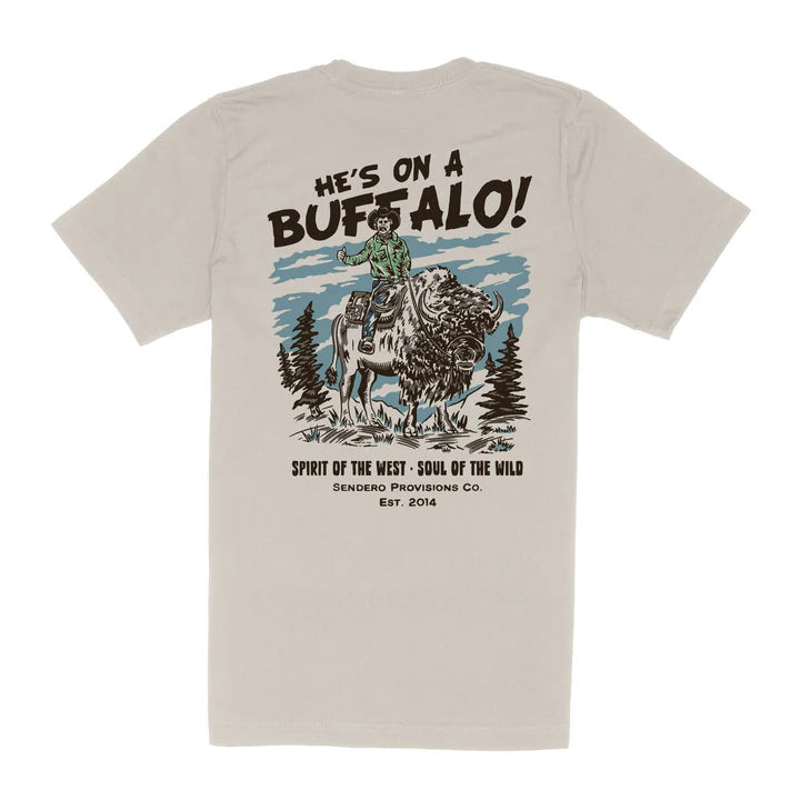 That daggum bear didn’t know if it was fightin’ or flightin'—but it sure as heck didn’t know who was chasin’ it. A guy? On a buffalo? That’s right, nature’s most unstoppable force ridin’ nature’s most unstoppable creature. Hooves poundin’, beard flowin’, with absolutely zero plans for how the heck to stop if, much less get off of it.