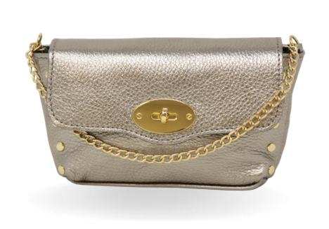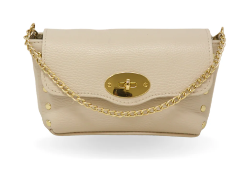 Italian Leather Bag has a versatile gold chain strap that can be adjusted for a crossbody or handbag look, making it perfect for any occasion - from date nights to game days.