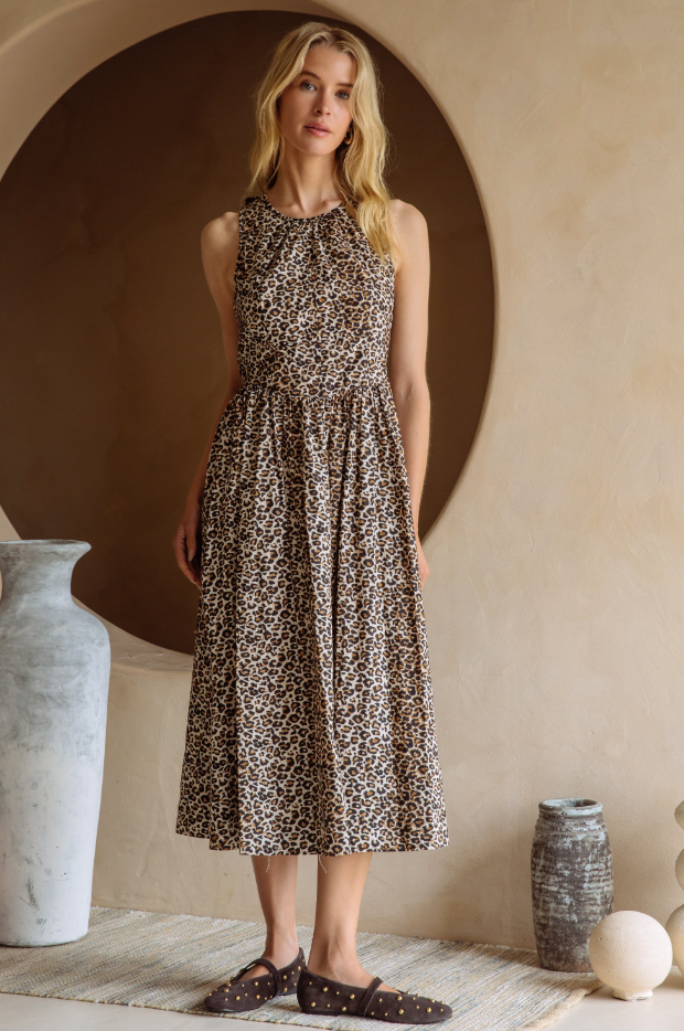 Elevate your wardrobe with the Emilia Leopard Print Poplin Midi Dress. Crafted from breathable poplin fabric, its flattering midi length and bold leopard pattern make a stylish statement for any occasion. Comfortable yet eye-catching, this dress pairs effortlessly with both casual and dressy looks, ensuring you feel confident and chic all day long. Perfect for those who want to blend timeless elegance with a modern edge.