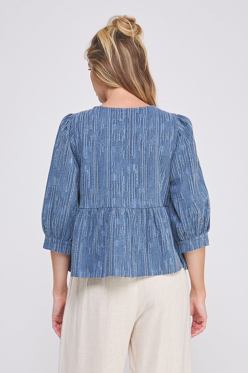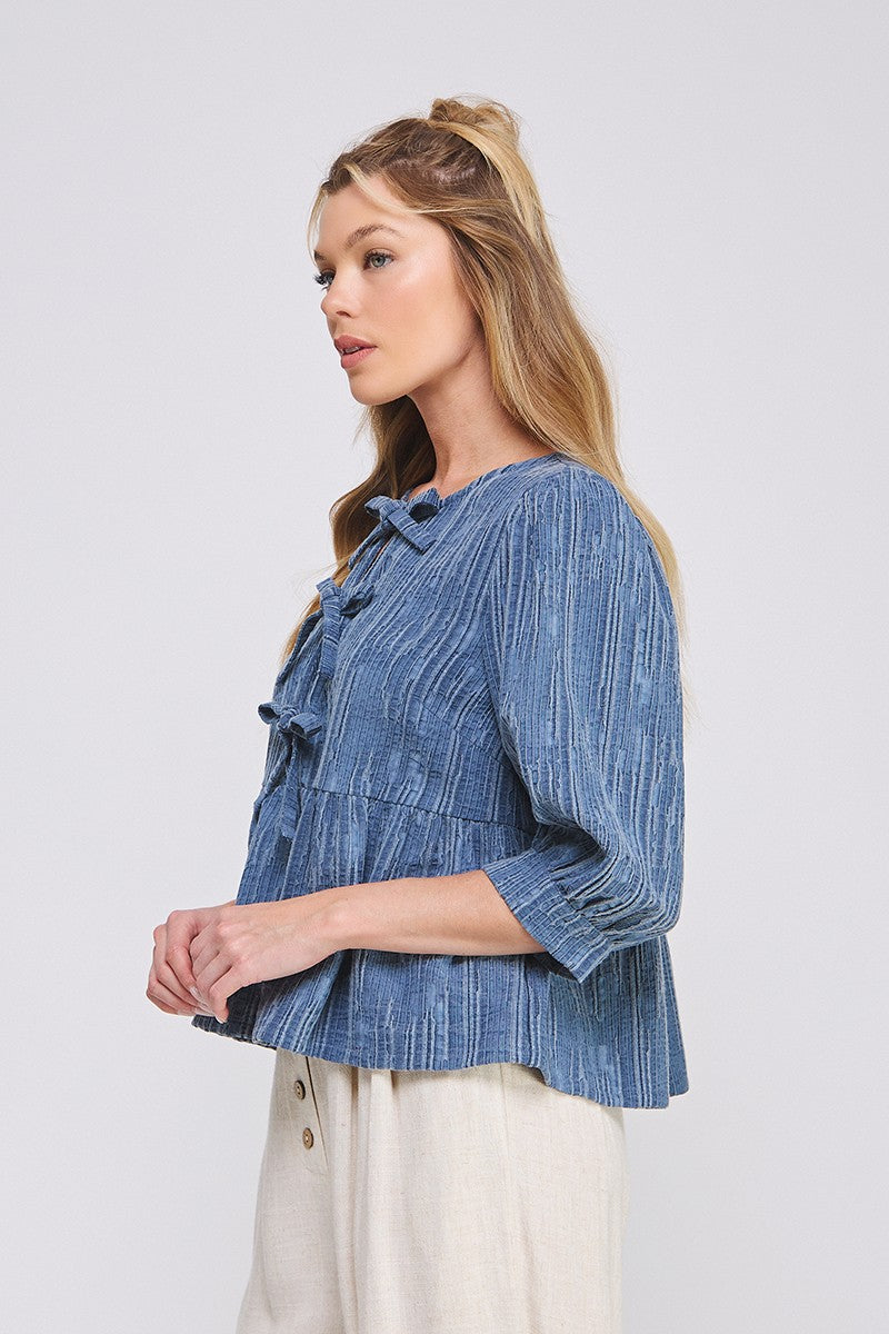 Giselle Textured 3/4 Sleeve Ribbon Blouse