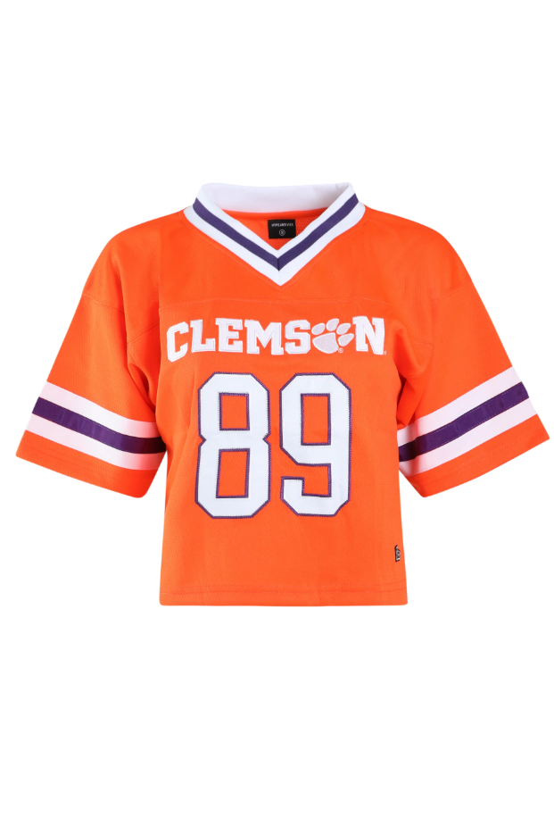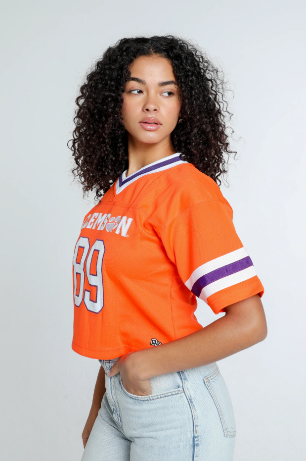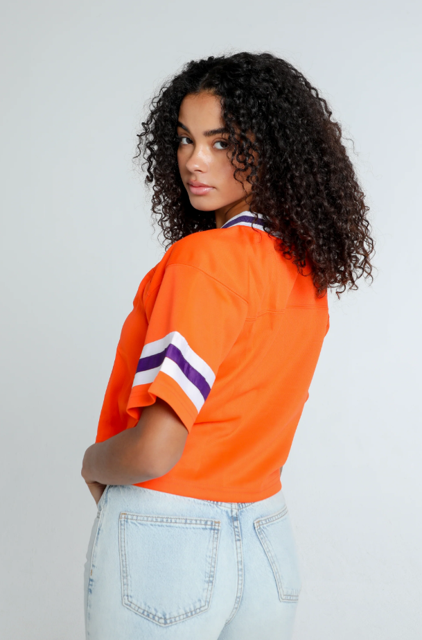 Win by a landslide in the all new Football Jersey. This versatile jersey is perfect for rooting for your team and being on trend! Style it with jeans and ballet flats for trendy vibes or a mini skirt and sneakers. If you like having the cutest gameday fits then this is the top for you! This slightly cropped style has an embroidered twill logo, talk about quality!