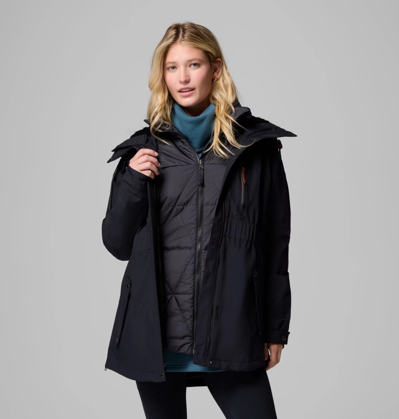 With three ways to wear this jacket, you’ll be warm and protected with a waterproof-breathable outer shell, toasty gold thermal-reflective lining, and a faux-fur-lined hood for extra style.