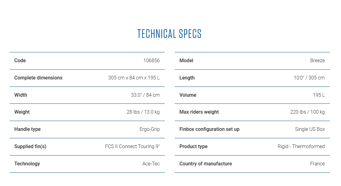 - Complete Dimensions: 10'0 x 33.0" x 195 L