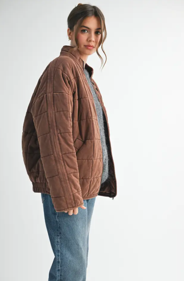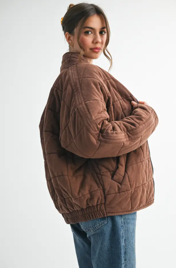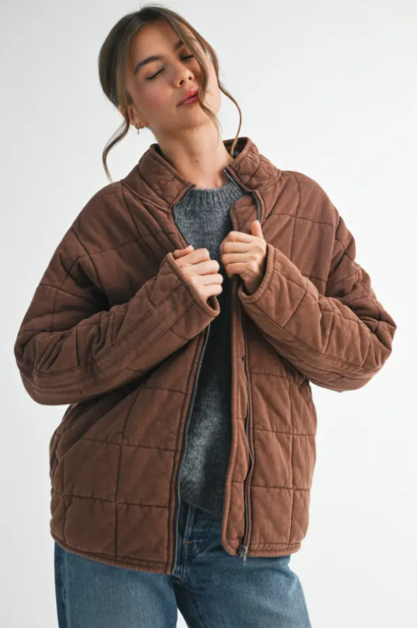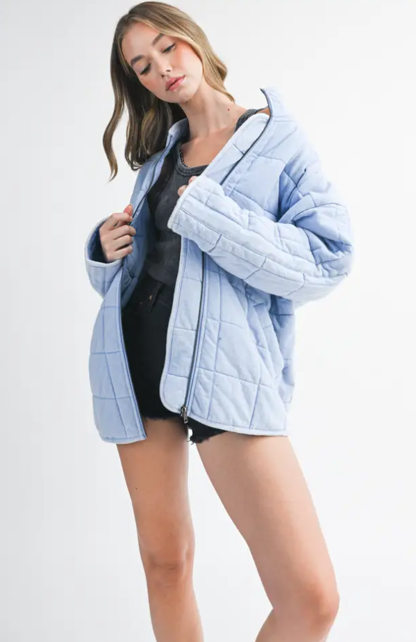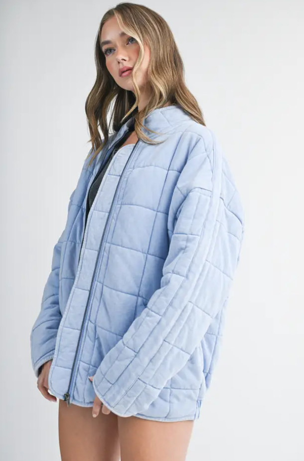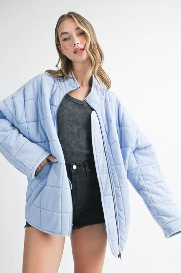 Introducing the perfect quilted washed oversized Dixie jacket features a thoughtfully crafted design that strikes the ideal balance between fashion-forward and comfort. The oversized silhouette exudes a relaxed and laid-back vibe while the dolman sleeves add a touch of sophistication and uniqueness. The material is made from high-quality 100% cotton fabric that is pleasant to the touch and surely to to turn heads wherever you go.