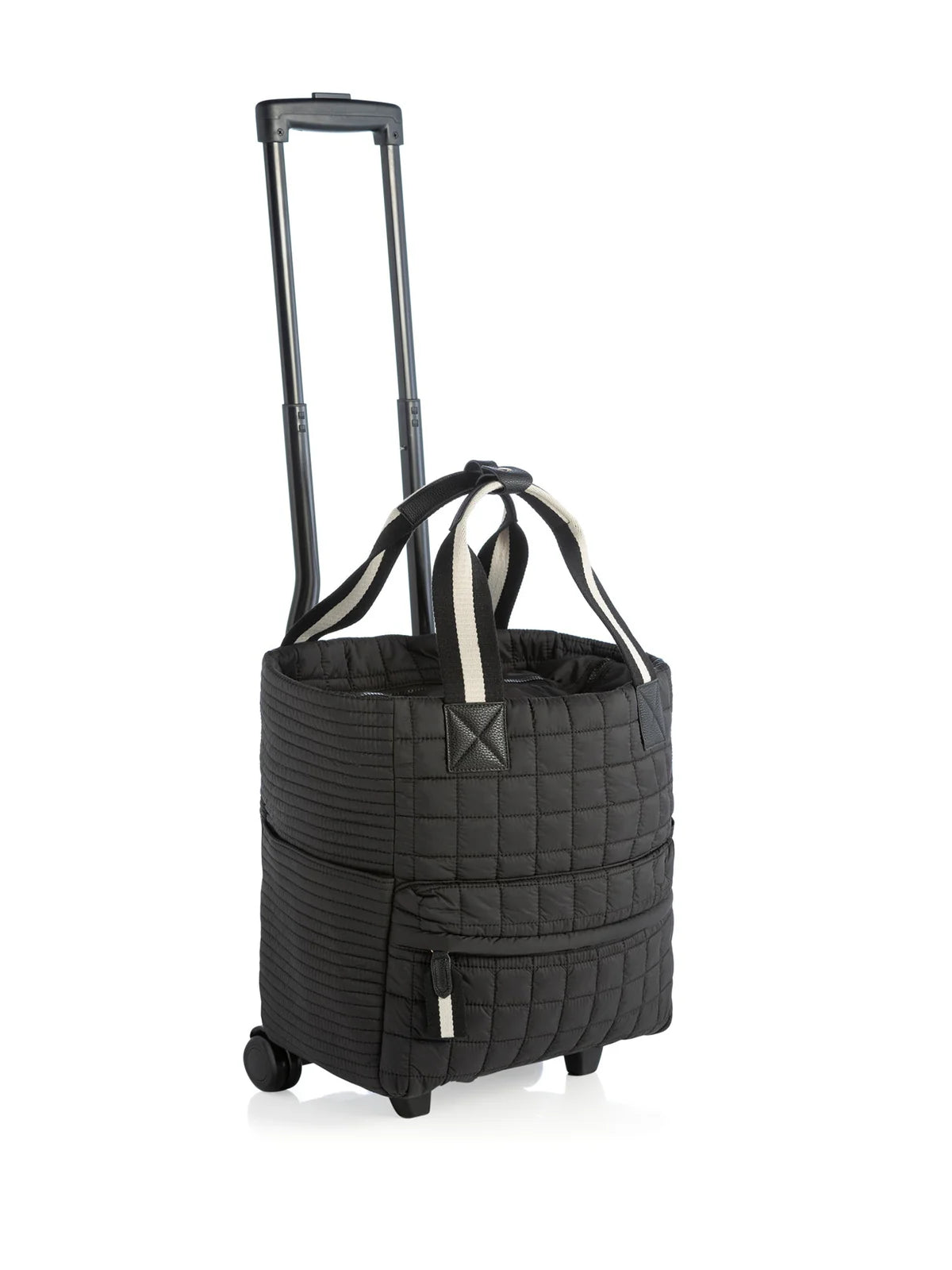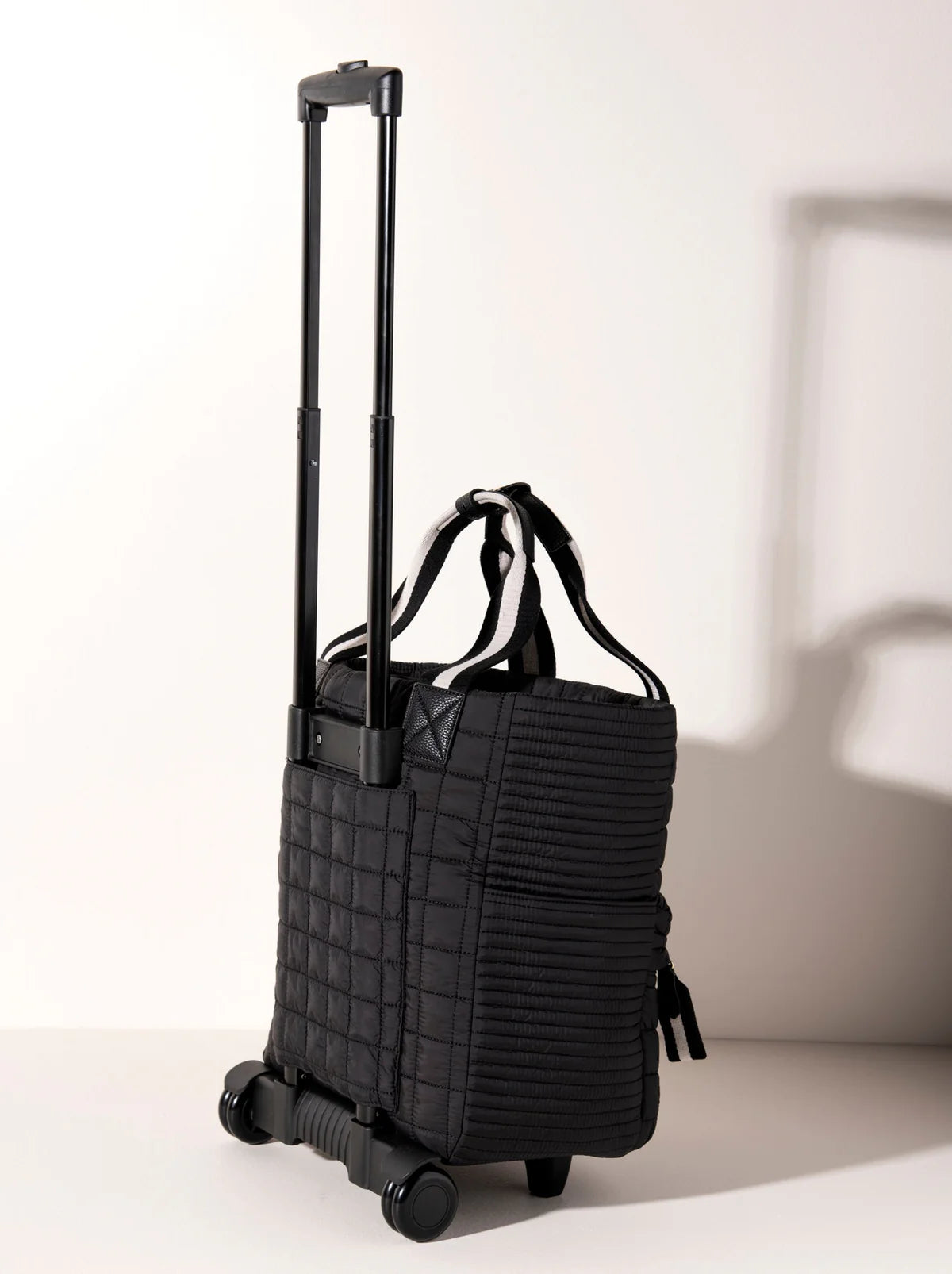 Meet the travel gamechanger: the Ezra Roller Tote! Made from our signature quilted nylon, this roller bag blends style and function like no other. With a roomy interior, multiple pockets, and a smooth pull handle, it’s perfect for jetting off on weekends or strolling through your daily commute. Bonus? It comes in vibrant colorways and stylish prints to make every trip a standout moment.