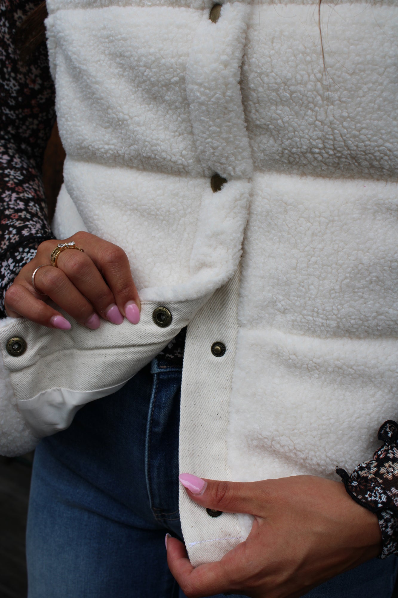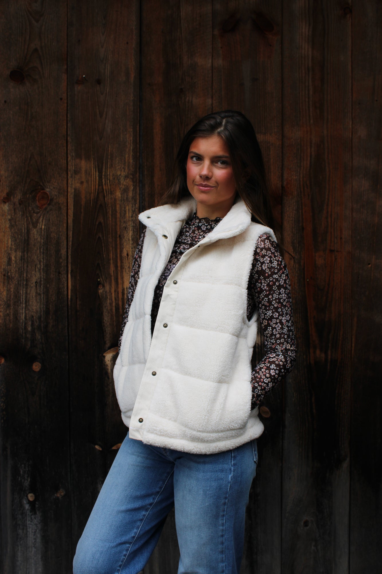 Elevate your outerwear game with the Teddy Puff Vest. Crafted for bold statement-makers, this vest combines plush, teddy-textured warmth with a lightweight puff design, offering a daring blend of comfort and edge. Perfect for layering, it keeps you cozy without sacrificing style, making every outdoor adventure feel fearless and fresh.