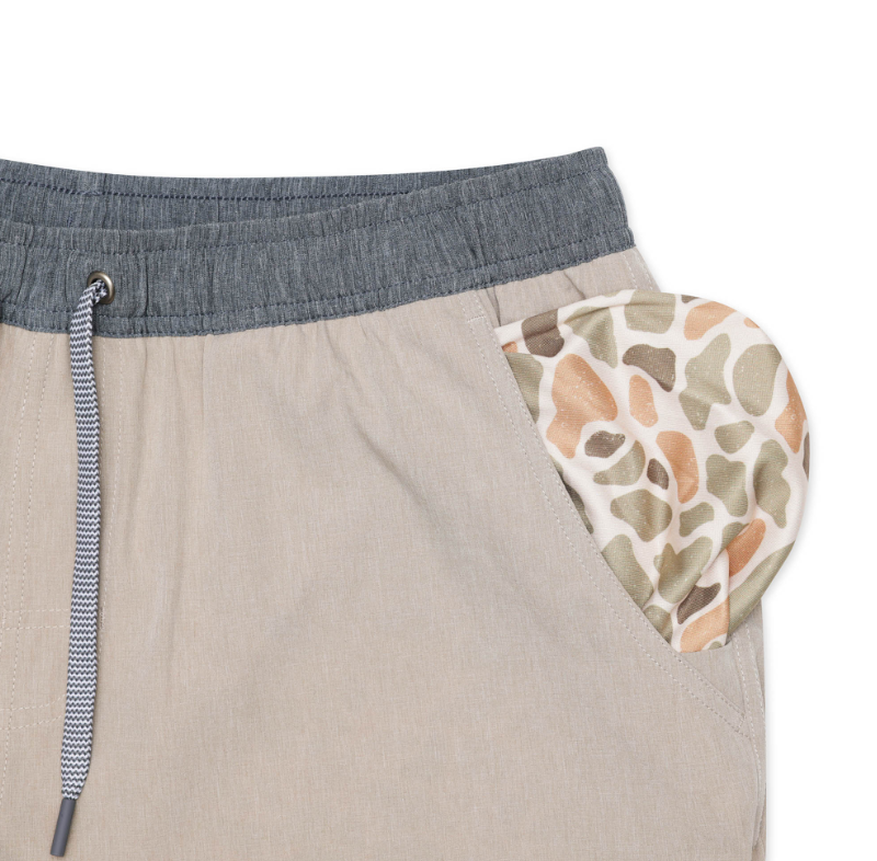 Liner inside to eliminate the need for compression shorts 90% Polyester 10% spandex Quick drying, moisture wicking, and four-way stretch Elastic waistband with drawstring cord Phone pocket in liner Available in a 7" running inseam