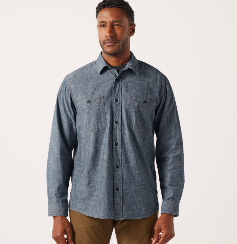 Our Chambray CPO Shirt is a lightweight take on the shirt that earned its stripes protecting the Navy’s senior enlisted men for decades. The tough chambray fabric stands up to abuse on the job in a weight that’s comfortable year-round. Garment-washed for shrinkage control and comfort from the first day. Button-secure chest pockets, with utility/tool slots in left pocket. Pleated shoulders for ease of motion. Military-grade melamine buttons. Button-adjustable cuffs.