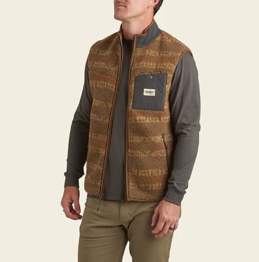 Named for the Chisos Mountains in the wilds of West Texas, the Chisos Fleece Vest is the perfect companion for a day when temperatures vary dramatically between dawn and dusk. 100% polyester sherpa fleece provides warmth for the core while remaining lightweight and breathable. Howler added simple kangaroo front pockets, a single snap pocket at the left chest, and a tonal reminder to Heed the Call on the back collar. Use it as a stand alone for autumn pursuits like throwing footballs and frying turkeys or add it in as a mid-layer on the ski slopes or wherever you need core warmth.