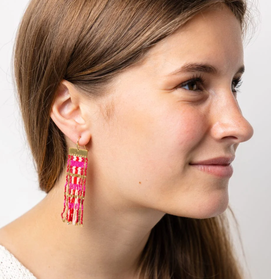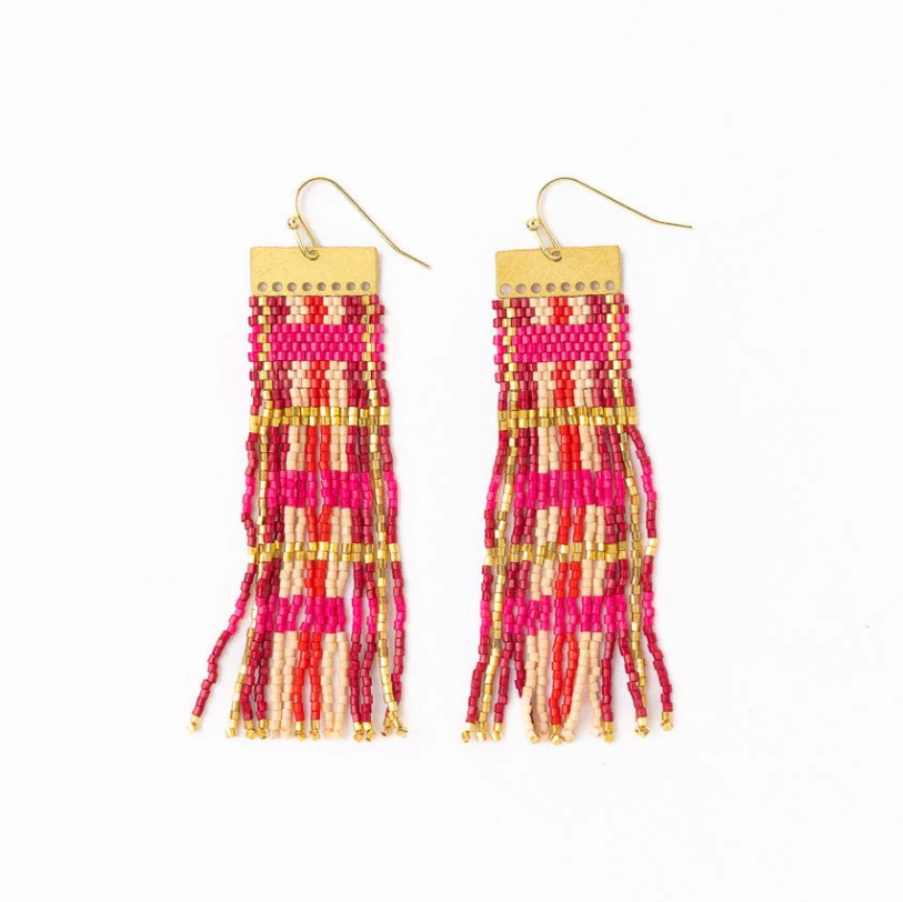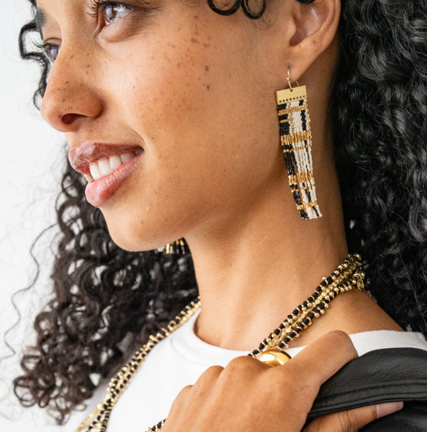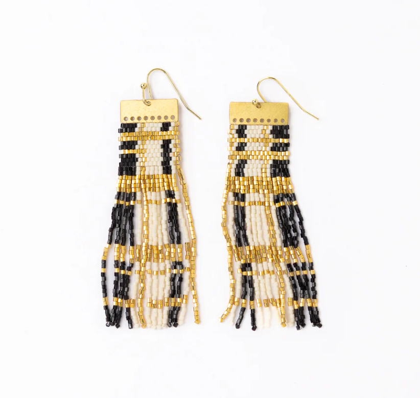 INK+ALLOY Mckenzie Brass Bar Long Fringe Earrings