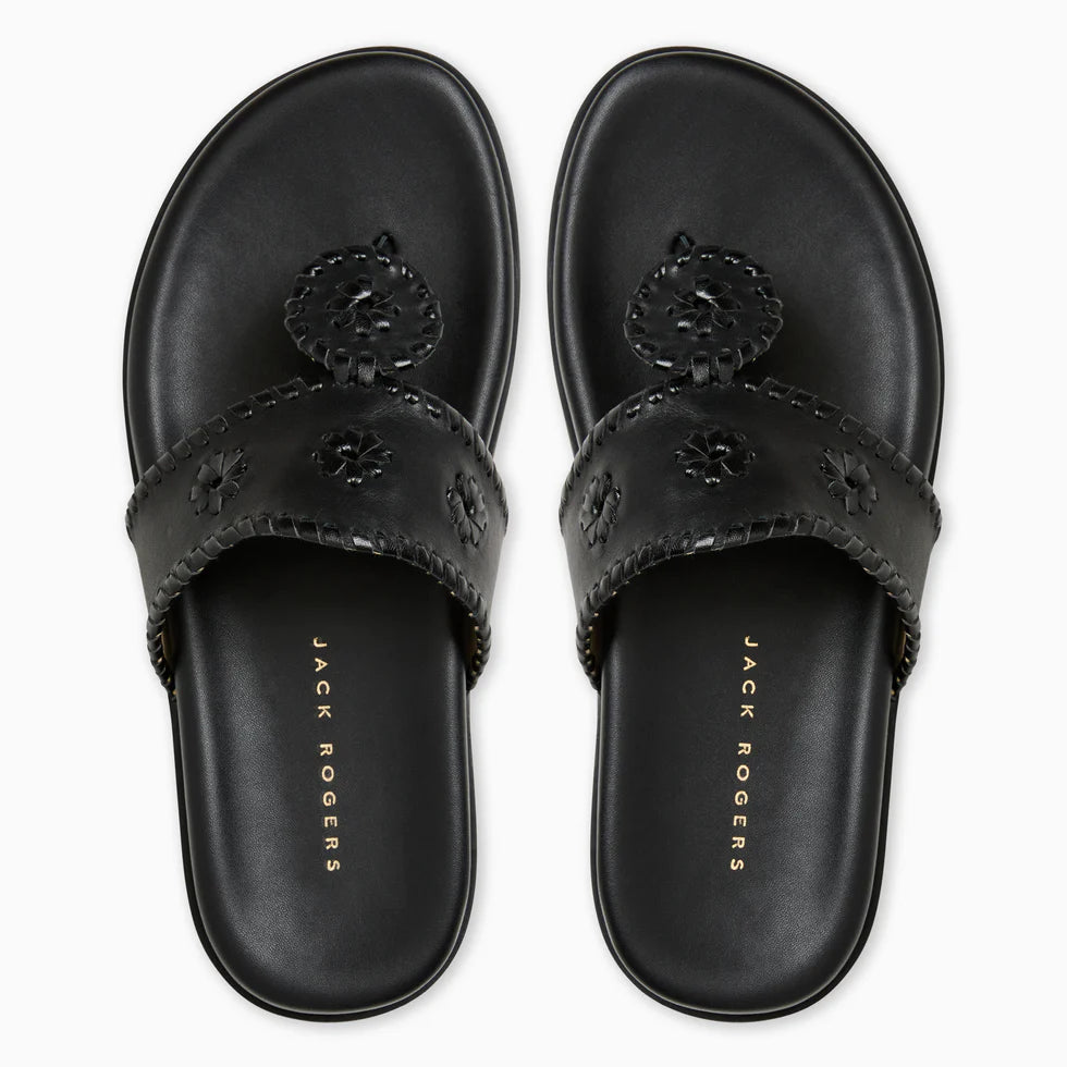 Sleek, supportive, and endlessly versatile—the Jacks Sport Sandal in Black is made to move, no matter where the day takes you. Crafted with a metallic Nappa leather upper with a soft leather lining, these travel-friendly sandals deliver a premium feel with a refined finish. The almond toe adds a classic touch, while the comfort footbed and sturdy thermoplastic rubber sole provide a luxurious fit. Whether you're heading out for errands, jet-setting to tropical locales, or enjoying a casual night out, this modern take on the iconic Jacks offers endless styling options and all-day wearability.