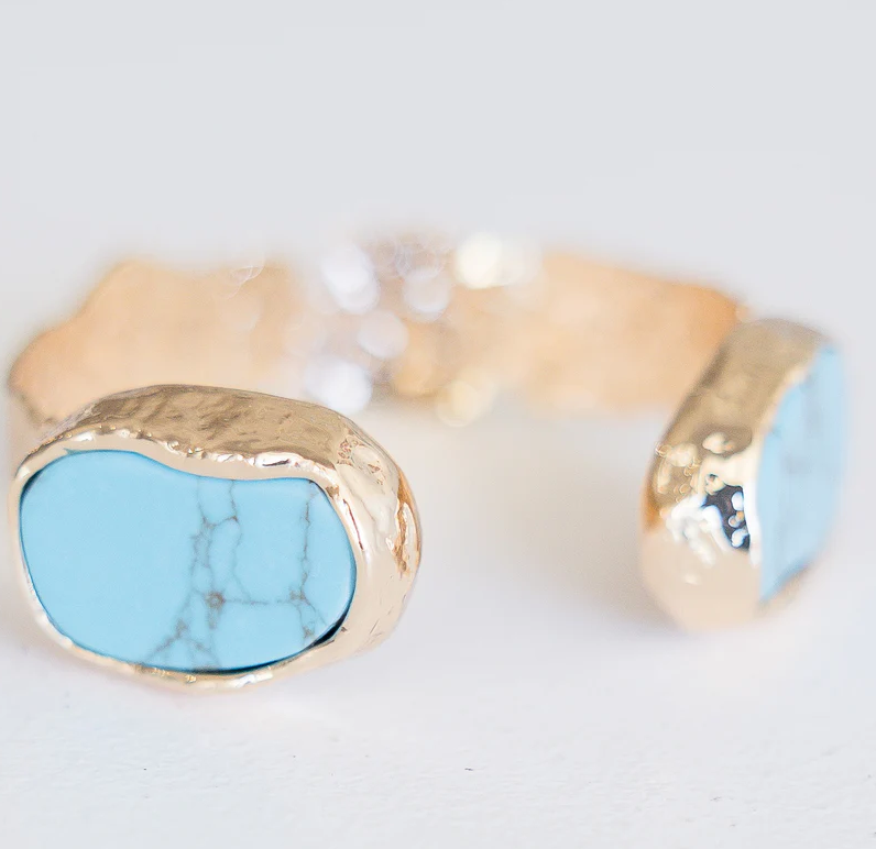 Turquoise gold hammered cuff, 1/2" adjustable
