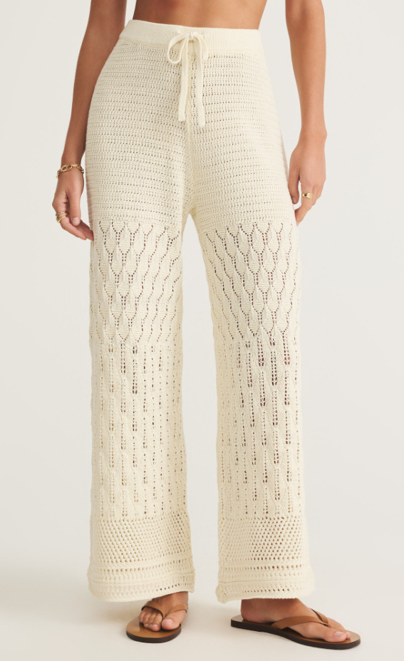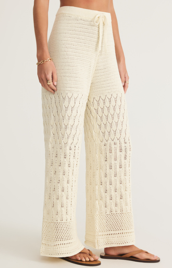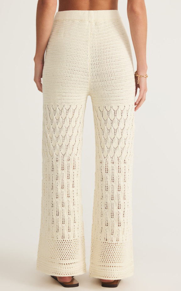 Crochet, but make it effortlessly cool; this high-rise pant features an engineered stripe pattern for a vintage-meets-modern vibe. The relaxed fit and adjustable waistband keep things comfy, whether you're dressing it up or keeping it casual.